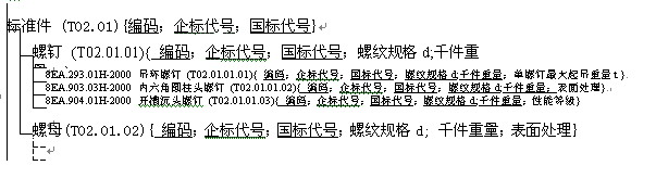 依据标准体系框图,先从纵向逐层提取各级标准(枝族)的公共属性特征进行归类,直到最低层的具体标准(叶族)的特有属性特征为止,再从横向对每一层内标准的属性特征进行提取归类。归类好的各级标准的属性特征即作为零件族客户化代码中相应关系类的类属性。族特征提取示例见图5。(说明:带下划线的属性为从上层继承而来的公共属性)