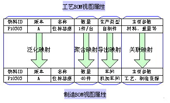 在BOM视图属性映射中,既包括属性项的映射也包括属性值的映射,映射过程体现了产品开发过程的数据集成性要求。