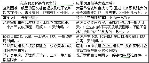 3) 信息化实施一定要同企业流程再造结合,没有好的流程,信息化就是空谈;PLM不是技术问题,实施PLM系统是一个典型的管理改造工程,需要在企业文化、战略、组织、流程等层面上进行相应的变革。再好的解决方案只是系统方案,而企业的问题很多靠管理解决的,PLM项目实施管理就是企业流程梳理过程,管理梳理过程和标准化的过程。实施PLM会暴露企业很多管理问题,实施PLM的过程也是帮助企业管理提升的过程;
