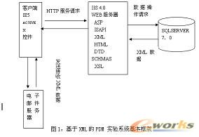 通过将结构,内容和表现分离, 同一个XML源文档只写一次, 可以用不同的方法表现出来: 在计算机屏幕上, 在手提电话显示屏上, 在为盲人服务的设备上翻译成语音, 等等. 它可以在可能开发的任何通讯产品上工作. 一个XML文档因此可以比其书写时的作者和显示技术生存得更久. 所以, XML将不仅限于Internet, 它在企业应用和电子商务方面更有独特的优势。例如,可将XML用于PDM、ERP中,可消除二者之间的数据格式瓶颈,使其无缝连接。 还有, 独立于平台的XML是为Web开发的 。 四、基于XML 的PLM系统的基本框架