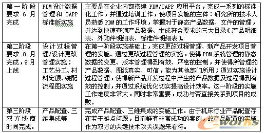 4月份,双方项目组在前期售前调研基础上继续深化讨论,对总体实施方案反复论证;在讨论过程中既吸收了其他机床行业实施PDM成功的经验,同时又考虑了中卫大河机床自身的技术管理特点,做到方案的先进、适用;按照总体方案,实施工作分为以下三个阶段: