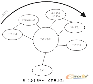 PDM系统对产品数据进行统一管理,保证了工艺信息的完整和唯一。整个工艺过程以PDM中的产品结构树为中心展开,具有良好的协调性和统一性,使得工艺管理工作在一种有序、可控的状态下进行。由于人的精力有限以及纸质文件的不易保存,往往造成不同阶段、不同版本之间的混乱,并由此产生整理、清查的重复性劳动,而PDM系统能够很好的解决这些问题。总之,基于PDM的工艺管理解决了传统管理方法中不确定、不可控因素对工艺过程的影响,具有高效、高质的优点。