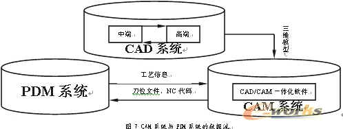 通常情况下CAM与PDM系统之间存在刀位文件、NC代码、产品模型和加工工艺信息等文档数据的传递,一般采用封装模式来处理它们之间的关系,而因为高端CAD软件本身很多就是CAD/CAM集成系统,将CAM系统完全内置于软件之中,因为CAM系统可完全集成于CAD系统中。