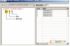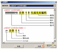 在XTPDM中,物料流水码、分类码、毛坯流水码、分类码随同现行零件号一块保存到PDM数据库中。这里的零件号指机床行业从设计、工艺、一直到生产,各部门都非常熟悉的表达方法:产品型号+部件号+零件顺序号,在PDM中作为唯一标识码。这样的处理方式既满足了在系统中使用人员仍可以按照已有习惯查看产品结构、零部件、生成报表,完成设计评审、变更、配置等主要工作。同时也可以用分类码,查询到流水码、零件号,满足使用人员操作上的需求。