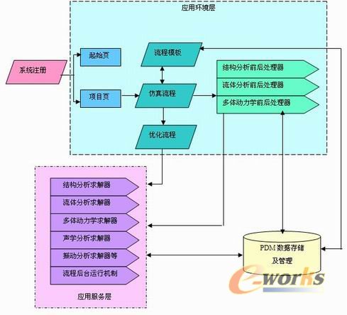 仿真工具的集成:通过集成CAE软件,打通由CAD到CAE以及CAE各软件之间的数据接口,实现完整的数据传递,形成完整的分析及优化流程数据流。包括结构、流体、振动、噪声等各种性能仿真软件之间的数据传递和共享;CAE软件直接共享CAD数字样机,实现CAD与CAE之间的数据共享与双向参数驱动;实现优化工具与优化流程的结合。