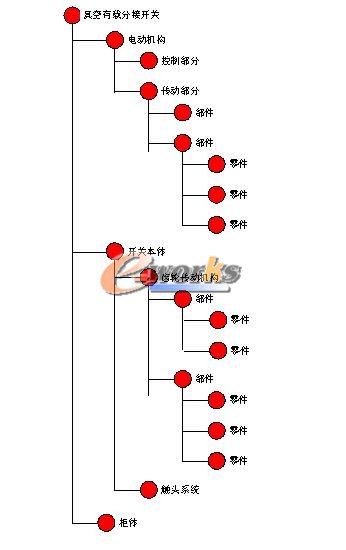 在PDM/PLM(TcEng)系统系统中,建立如下图所示的某开关的产品结构可采用两种方法: