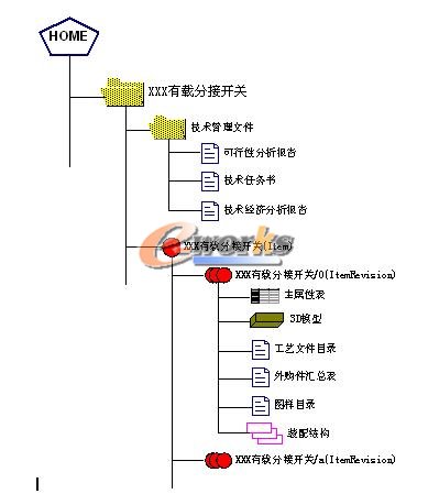 产品工作区:PDM/PLM(TcEng)系统中,与产品、部件、零件等直接关联的文件,一般直接存放在相关的Item下面。产品工作区主要描述直接与产品与构成产品各部分有关的各类文档,如各产品技术说明书、各类明细表、图纸、更改单等。如下图所示: