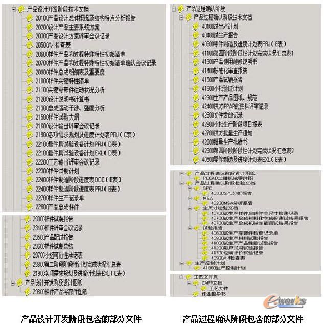 | | 企业新产品的开发过程比较长,一个重要的原因是从市场到产品设计开发,从产品设计开发到制造过程设计开发,再到批量制造的整个过程没有严格规定下来,过程的信息传递还不够及时,不够准确,还有信息不一致的方面,业务沟通的效率仍然比较低,更重要的是产品设计开发过程中的更改还比较多。加快新产品研发周期的一个最重要方面就是尽量减少在设计开发初期的失误,尽量在产品设计开发阶段就能将客户的信息,产品的特性要求正确快速地传达给与产品的设计,过程设计,制造部门,以及销售服务部门,并能将各方面的经验和意见收集和汇总给产品设计者;而产品和过程的设计者也需要在开发设计的过程中就将产品的设计特点,制造要求及时准确的传达给制造单位。总之,企业的新产品开发过程需要在一个规范的项目管理流程的控制下,所有的参与者在一个相同的的信息共享平台上来开展工作,从而能达到缩短新产品的开发周期的目的。 2.2. 研发过程难以满足APQP的要求,配套厂家的PPAP文档要求严格,工作量巨大。 由于汽车制造业的行业特点,产品的批量制造,以及批量产品的质量要求非常高,为了达到这样的要求,企业必须进行细致的产品形成过程管理,管理过程的内容都是通过大量的文档来体现的,同时配套厂家对企业提供样品的同时,要求提供非常完备的PPAP(生产件批准程序 Production Part Approval Process) 文档,也就是要零部件厂家要求提供质量控制的过程文档。下图中反应的是威孚的部分文档内容:  企业一方面急需一个快速形成并合理分类管理这些文档的软件工具,特别是统一企业范围的这些文档的标准模版,另一个方面是提供一个快速的文档集中管理和检索的工具,能快速的利用已经形成的各种文档中的内容。 当然这些文档应该在产品设计开发过程中的哪个步骤中生成,由谁生成,如何生成,信息之间如何关联,如何共享,如何批量地归档和正式化,也是企业面临的重要问题。 2.3. 产品数据的信息孤岛问题。 企业经过多年的信息化建设,在设计部门长期以来运用了各种计算机软件工具,这些工具在不同的阶段都对提高了日常的工作起到了很好的作用。 但是也带来一些显然易见的问题,这些不同的应用程序,不同版本的应用程序所产生的电子文档通常是互不兼容的,例如CAD工具的版本问题,造成信息共享的问题,还有CAPP工艺文件无法很好的数据共享,企业内部如果需要共享这些数据,则必须在相关的计算机上安装各种各样的计算机软件工具。这些看似集中管理的文件形成了散落在不同计算机系统中的信息孤岛,信息不能被大多数的系统浏览,数据无法提取,很难再使用。企业为了解决某些数据的浏览问题可能投入了更多的资金去购买专业的软件来安装到相关人员的计算机中,也是一种投入的浪费。 2.4. 产品数据的安全共享问题。 产品数据的共享一方面是部门之间的产品数据共享,另外一方面是历史的产品设计数据对现有产品设计的一个参考。实际上目前产品数据由于缺乏共享机制,没有通过以产品、部件为组织形式,没有以部件特征参数为检索条件,各种产品数据之间缺乏联系,不能顺藤摸瓜式的将产品相关的数据获取,这种情况比较大的影响了产品的开发进度。 设计人员往往比较注重某个设计软件带来的设计效率的提高,但是很多情况下忽视了这样的一个事实,真正用于设计绘图的时间并不多,而确定设计方案是最重要的事情,但是检索以前的设计方案,查找相关的技术文件,技术标准的时间约占用了40%的设计时间。更不用说设计提交后,部门之间数据的共享,特别是数据发生更改后的最新数据的共享所花费的时间和精力。 在技术积累和技术共享方面没有形成一个信息平台,没有提供一种运行机制,无形资产没有更充分利用。 市场竞争日趋激烈,人才流动比较频繁,信息化同时也带来企业无形资产和知识财富管理的困难。如何安全管理企业的无形资产资源,也是企业不得不面对的现实问题。现有的情况下,安全和共享是一个不可调和的矛盾。 | 本文系e-works专稿,未经授权严禁转载。 | | | | 责任编辑:李翔 |