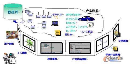 南京威孚PDM/PLM解决方案 通过项目视图、组织视图、产品结构视图、产品工艺视图、文档视图和零部件族视图来分别对项目、产品、工艺、文档和零部件实行全方位的管理。TH-PLM可以将所有与产品相关的数据都放入数据库中,与产品相关的数据不仅仅是设计图纸,TH-PLM还能集中管理的内容有很多:例如在APQP过程中产生的产品零部件的特殊特性清单,DFMEA/PFMEA,控制计划,CAPP工艺文件,NC程序等。这些数据都能集中的被TH-PDM数据库管理,在保证及时准确和一致性的同时,能很好的解决安全性的问题。