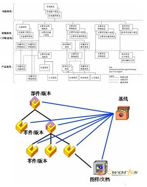 基线:如下图所示,基线是在技术状态项目研制过程中的某一特定时刻,被正式确认、并被作为今后研制、生产活动基准的技术状态文件。在Teamcenter Engineering系统中,通过基线的建立、数据的投放/移除、数据的更新、冻结等手段,实现对技术状态基线的管理。