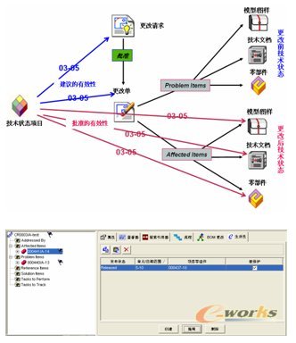 根据企业业务需求,在Teamcenter Engineering系统中可以定义不同的更改管理对象。下图所示为系统中缺省的更改管理对象。更改管理对象(如问题报告、更改建议、更改通知等)作为整个更改信息的载体,集中管理了在其生命周期中的所有与之相关的过程和信息,包括每个更改对象自身的属性、各更改对象间的关联关系(如更改通知与更改建议的关系)、更改之前的数据、更改之后的数据、更改前后的产品结构比对、更改所造成影响的评估、更改的审批流程、更改的生效性(生效日期或批次)等,从而维护更改的完整性。从而通过将更改对象与相关的文档、BOM等资料相关联,来记录每一次变更的历史,以便查询全部更改的过程。而一旦更改发生,都将自动通知受影响的部门,确保更改后的产品对象和文档可以得到最快的应用。
