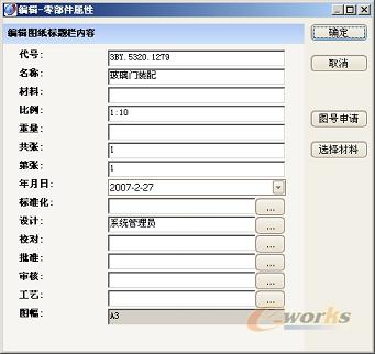 ◆ 标题栏、明细栏内容的填写工具,提供图号申请、选择物料、选择零部件等功能;