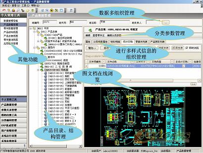 在PIMExpress-PDM系统中,包括了进行产品总装、零部件、产品结构、图文档、模具信息等有关的管理功能,是设计人员和数据管理人员进行产品数据管理的主要环境,包含的功能点有: