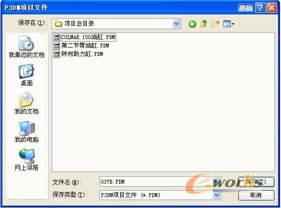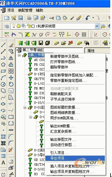 当然清华天河的项目设计管理系统P3DM的强大之处不止这些,还体现在图文档的管理上。由于液压缸品种多,产品图纸基本上由设计工程师自行管理,存放比较散乱。在参数计算结构设计阶段进行类比设计和系列化设计时,需要查看以往的产品图纸,这时往往在查找图纸上浪费了大量时间。如图4所示,通过P3DM只需将各个项目导出到一个共享目录(比如称为“项目总目录”),这个目录里只有项目的pdm文件,而图形仍然在原来的地方,想要打开某个零件的图纸,只要打开其所在的项目即可,而不必理会该零件的图纸究竟存放在何处,这样可以节省很多时间。有时候在设计一个比较复杂的液压缸产品时,其部件较多,需要几个人协同设计。对于这种情况,项目负责人将各部件的设计任务分配给相关人员后,由部件设计人员建好部件级项目,项目负责人建立产品级项目,然后引用各部件项目。这样项目负责人就可以动态了解各部件的设计进程,并可以查看和编辑各部件项目中的零、部件图纸,编辑后的图纸会自动更新到各部件项目中。当然,P3DM的图文档管理功能还是比较粗糙的,但在企业实施PDM系统之前,就部门级的产品管理来说不失为一个较好的解决方案。