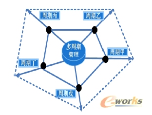 因此多周期的数据管理是PLM系统发展应用的趋势,如图3所示,同一份数据同时存在于5个生命周期线上,需要保证不同生命周期的不同阶段的有效管理。