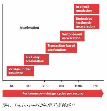 Incisive-XLD 提供按需加速功能,Base设计团队验证系统。它是一个特殊配置的Cadence Paladium加速器/ 仿真器-大量并行布尔计算引擎。与RTL模拟相比的性能增强依赖特定的设计和验证类型。