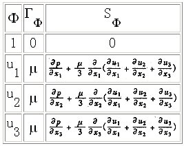 表1 控制微分方程中的Ф、ГΦ以及SΦ