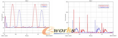 图7 相应的气门弹簧受力曲线 图8 相应的凸轮与挺柱间接触力曲线