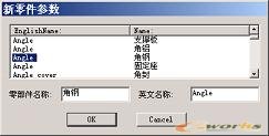 在输入零件名称、英文名称时,为提高名称的规范性,系统采用一个已有零件名称作为零件命名知识库的方式,用户可优先从数据库中选择一个名称出来作为该零件的名称,选择时,系统自动保证中英文名称的一致性。