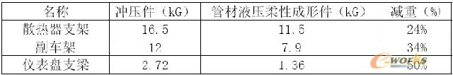 表1 汽车上部分冲压件与管材液压柔性成形件的重量对比