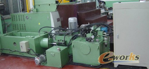 国内用类似的方法加工三通管、波纹管等管件和自行车零件,但成形压力较低,工艺参数之间的优化控制也不严格,用管材液压柔性技术成形汽车领域的零件还是空白,未应用到实际生产中。北京航空航天大学在早期开展液压柔性成形的基础上,利用国家的资助,开始管材液压柔性理论、工艺和装备关键技术方面的研究,并研制出国内首台五轴管材液压柔性成形机,如图12 所示。该装备由多个单元组成,可以实现各种控制参数的优化匹配和严格控制,其主要参数有:(1)内压最高可达150Mpa,现正在安装400MPa 高压源;(2)侧推力最大1500kN;( 3)可加工零件最大直径100mm,最大长度1000mm。