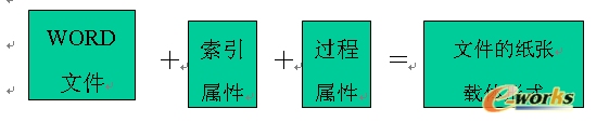 这部分特殊的信息载体究竟是什么呢?经过深入研究,我们发现应当增加两部分属性信息可完成上面的等式,使电子文件能和纸张载体形式承载同样的信息。这两部分信息分别是索引属性和过程属性信息(图三)。