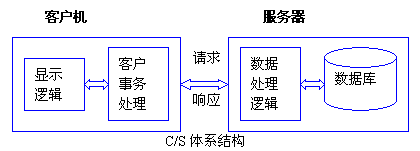 1、 基于C/S: 在C/S体系中,应用程序分为两部分,一部分是由多个用户共享的信息与功能,即服务器部分;另一部分是为每个用户所专用,称为客户部分。客户部分负责执行前台功能,如管理用户接口、数据处理和报告请求等;服务器部分执行后台服务,如管理共享外设、控制对共享数据库的操纵、接受并应答客户机的请求等。这种体系结构将一个应用系统分成两部分,由多台计算机分别执行,使他们有机的结合在一起,协同完成整个系统的应用,从而实现系统软件、硬件资源的最大限度利用。 C/S应用系统基本运行关系体现为:“请求/响应”的应答模式。每当用户需要访问服务器时就由客户机发出“请求”,服务器接受“请求”并“响应”,然后执行相应的服务,将执行结果送回给客户机,由它进一步处理后再提交给用户。 由于C/S结构设计成两层模式,现实逻辑和客户事务处理均被放在客户端,数据处理逻辑和数据库放在服务器端,从而使客户端变得很“胖”,而服务器的任务相对较轻。