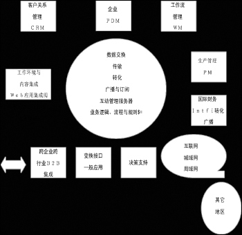 对于企业间的应用集成,URP有引以为自豪的“互动管理服务器”担当了此重任。互动管理服务器基于消息机制,以XML作为数据交换的协议、Web Service作为应用集成的桥梁。