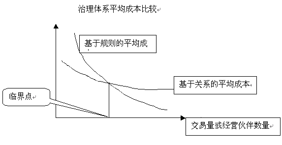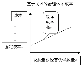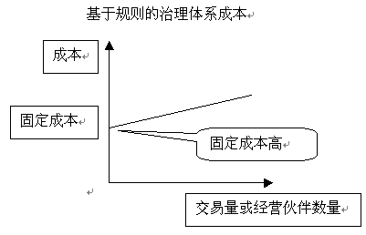 当前国际经济的竞争,实际上就是跨国公司之间的竞争。这是一个不可争辨的事实。世界一流的企业都是具备很高的信息化水平。如瑞士雀巢总部利用信息化系统,对分布在全球400多家企业的财务、资金、质量实行集中统一管理。总部随时监控资金在世界各地运作的状况,在几分钟内就能调动散在全球的几十亿,上百亿资金1。 我国的企业,尤其是大中型国有企业的情况如何呢?根据国家经贸委信息中心于2001年对520家国家重点企业和地方骨干企业的信息化情况的调查报告,我们痛心地看到,企业信息化标准规范应用水平很低。一是企业编码标准实现的程度低。产品编码标准全部实现的企业占18.8%。管理科目编码标准全部实现的企业只占5%;二是使用国际标准的企业比例极低。产品编码使用国际标准的企业只有2.8%,管理科目使用国际标准的企业比例更低,只有1.6%2。 建立企业编码标准是实现企业管理信息化的基础之基础。企业内部没有统一的产品/管理科目编码,就不可能知道自己有多少原材料,在制品,产品,有多少资金;也无法统一调度,无法对市场变化作出快捷反应;国有企业国际标准编码使用率如此低,在当今时代是难以与国际企业交流的! 二、几点概念 1.公司治理体系 一般而言,存在两种体系,一种称为基于关系的治理体系(Relation-BasedGovernanceSystem),另一种称为基于规则的治理体系(Rule-basedGovernanceSystem)。基于关系的治理体系固定成本低,但随着交易量的增加,其边际成本会越来越高。这是因为对每个交易伙伴需要进行筛选、测试、监督。因每个人又只有有限的授权范围,于是随着交易量业务量的增大,企业的机构越来越臃肿,平均成本越来越大,信息失真逐渐加大,企业整体反应变得迟钝。基于规则的治理体系,固定成本高,因为需要先建立起复杂的基础设施,如计算机网络系统,企业基础信息编码,企业信息传送规则, 岗位权利与义务的定义、解释、执行、实施、基本信用制度的建立等等。但是随着信息量/业务量的增加,边际成本逐渐下降,从而使整个平均成本下降。下图表示出这两种治理体系下平均成本的变化情况。