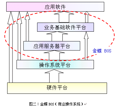 金蝶BOS是金蝶EAS中最核心的技术,即金蝶自主版权的中间件,它包含一个J2EE应用服务器和一个业务基础软件平台。