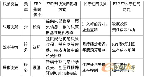 因此,我们可以得出ERP对决策的影响程度、影响方式表如下: