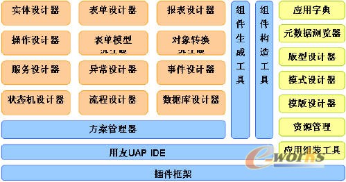 用友UAP平台也正是随着软件产业的发展而不断发展,推动软件产业的不断进步。1995年开发完成了基于DOS的平台,在1998年基于Client/Server开发了支撑U8的平台,在2000年基于J2EE开发了支撑ERP的平台。 今年,用友UAP平台又推出重量级的新产品,这是一个全面支撑软件产业工业化的一体化平台,主要包括:应用开发框架ADF、集成开发环境IDE、产品线开发平台PDE和产业链支持平台ICS,四位一体的用友UAP,打造应对企业应用软件产业变革的利器。