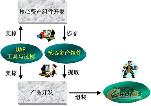 用友UAP PDE产品线开发平台提供了对软件产品线工程的支撑。在软件产品线工程所生产的产品中,产品共享业务模型、特征与软件架构,并且通过组装,而不是重新开发,通过工业化的手段解决产品交付的问题。