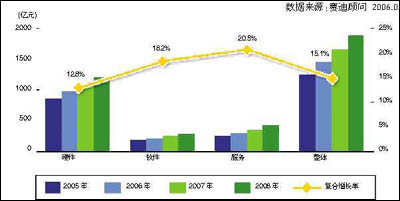 图2 2006~2008年中国中小企业IT应用市场规模与复合增长