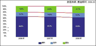 图3 2006~2008年中国中小企业IT应用市场结构预测