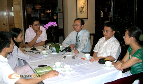 天剑公司副总经理陈光华先生(右二)接受媒体采访