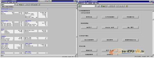 Oracle数据库下,用户可以通过SAPGUI进行联机监控,能够获取多项重要数据,如Oracle的Data Buffer,Shared Pool,Redo Log Buffer,Calls,Table Scans/Table Fetch,Sorts等。此外,用户还能观察I/O请求,V$值等。如图4所示。