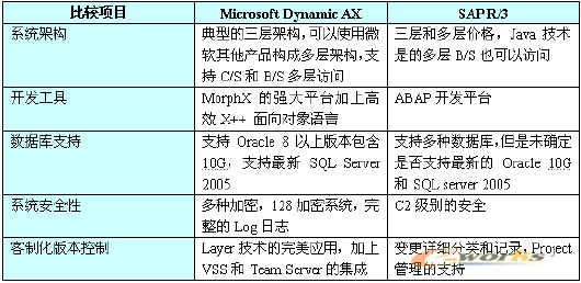 以上的比较,可以看出成熟的ERP产品都有其成熟而先进的技术作为背景支撑的。虽然从诞生的先后次序可能造成各自的技术侧重点不同,就其发展和升级方面,都有其过人之处,才能在IT这个技术不断升级换代的时代得到发展。同时也不可否认的是,由于发展阶段和时代不同的缘故,新的IT技术在AX上体现得更充分,而且最重要的是AX的所有Application的代码是完全公开的,同时又有世界领先的软件厂商的背后强大支持,有理由相信AX会做得更好。这让我们广大企业用户有了更多的期待,更多的选择。