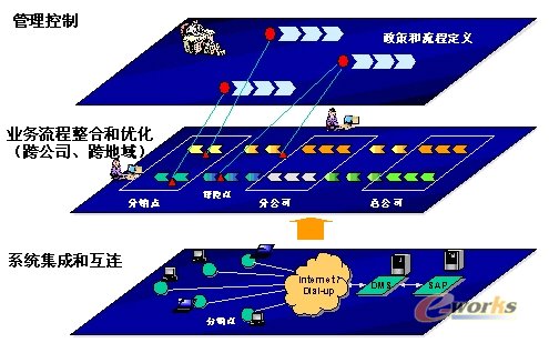 业务流程整合和优化:总公司与分公司和办事处以及分销点之间业务流程的协调一致和自动化(如订单协同、发货协同等等)。