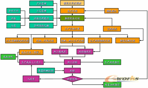 对于软件公司也存在着两个主要问题。第一个问题,你的软件产品能否符合企业管理的要求,甚至能否符合企业管理原理的要求。在企业市场竞争日益激烈的今天,企业内部的管理,包括供需链的管理越来越需要强调计划性,特别是要强调计划的准确性、及时性、可靠性和全面性。ERP系统不是以"财务为中心",也不是以"生产为中心",ERP其实就是一个工具、一个助手,但这个助手是有"灵魂"的,这个"灵魂"就是--计划。在确定目标后,计算机系统提前、自动地将与之相关的所有工作(包括加工工序、装配工序以及班组、车间、分厂的工序协同)规划出来,将做什么、做多少、什么时间、在哪儿做、谁来做、为什么做这些内容,完整、精确、快速、全面、一次性地计算出来,使每一个相关单位和人员提前了解和按时做好规定应该完成的工作,确保总目标的实现。这才是ERP系统真正的价值所在。下面我们看企业计划管理中的一个示意图: