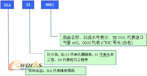 一般而言,维护用品可以再细分为机器维修,水务工程,电力工程,厂房维修等,编码时可以直接通过次分类结合流水号的方式进行。