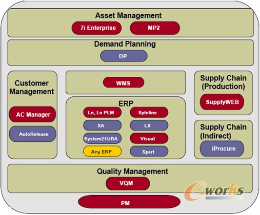 ●创新:形成行业整合套件。根据行业的需求,Infor在不颠覆原有产品的基础上进行持续创新,把应用广泛的业务程序组件组合到特定业务解决方案中,最终与行业经验整合形成Infor产品组合。