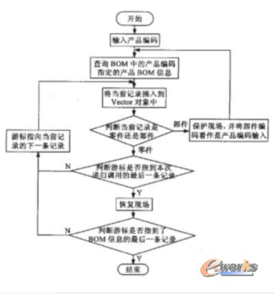 在Java2中的Vector类可以支持动态数组,并且可以将不同类型的对象(当然相同类型的对象更没有问题)引用到Vector类的对象中去。Vector引用的对象存储的是一条条BOM 信息,而不是一个个的ResultSet数据集,所以在构建Vector对象时就必须对每一次查询得到的ResultSet数据集中的BOM信息进行重新处理,使数据集中的BOM信息能够按照要显示的1顷序在Vector对象中排列好。这是一个先序遍历过程,具体操作过程流程如图3所示。
