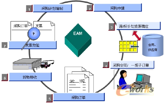 根据大唐国际采购业务流程和IT系统建设的现状,实施方与大唐国际共同制定了将整个采购流程分成需求的提出、货源的确定和采购的执行三个环节,EAM系统作为采购计划引擎和执行引擎的实施思路上:即EAM总体上负责各电厂物资采购需求计划的提出和采购订单的后续执行,而大唐采购网(大唐国际实施SRM系统之后的采购平台)作为采购的货源引擎,利用互联网的协同功能,负责根据各电厂的采购需求,利用丰富的询源手段(招投标、询价、竞价等)和协同功能,确定合适的供应商和合理的采购价格,从而形成采购订单(见图一)。
