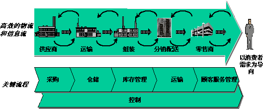 在这张图上,我们可以清晰地看到一条相对完整的供应链上,信息流的传递方向是从消费者到零售商,再从零售商到分销商,再往上游到达制造商和制造商的原材料或半成品的供应商…….。这只是一个简单的示意图,实际上信息流上包含的内容极为复杂,既有自右向左的需求信息,还有自左向右的需求确认信息,更有每个节点企业之间的交错联系的其他各种商务信息。 而涉及到的关键流程则包括采购、物料和半成品仓储、生产制造过程中的在线库存管理、成品的分拨以及最终的配送等等。而支持这些关键流程的物流活动更为复杂,从基本形态上可以分为运输和仓储,但在实际的操作过程中则包含了采购和销售订单的处理、采购运输物流、物料的精细化仓储、生产线的及时配送、成品的入库保管、对经销商的分拨配送、货物的在途跟踪等。 从技术角度来讲有包括了电子订单处理、巡回取货(milkrun)、库位管理、条码管理、无线射频、物料仓库预组装排程、生产过程中看板管理、运输过程中的卫星定位或无线通讯定位(GPRS)、装载优化和路线设计优化等许多的内容。 我们把供应链上发生的物流和信息流分成两大类,其一是通过单个企业可以基本自主完成的工作,这一类的工作基本是操作层面的事务,如相对独立进行的仓储管理、运输管理、生产线配送管理等。这些活动通过生产计划排程、仓储管理系统和运输管理系统等信息系统的支持就能够比较容易完成。另一类则是单个企业自身难以完成的工作,主要指同供应链上的各种计划有关的事项,如采购计划的生成、确认和执行跟踪,销售计划的生成、确认和执行跟踪等。 对于这一类工作来说,操作层面上的物流信息系统和生产排程系统就难以支撑了。传统上,在分析供应链上库存放大的“牛鞭效应”的时候,大家主要关注的是差强人意的市场预测精确度。比如在对某个产品进行未来三个月的市场销售预测时,在综合考虑自下而上的销售预测(bottom up forecasting)和自上而下的销售目标(topdowntargeting)的因素之后,仍然会由于竞争对手的市场行为或经济环境的非预期性的变化等各种影响因素,导致需求预测同实际达成的销售结果之间存在较大的差距,尤其是非订单生产的产品(non-make to order products)明显的面对着这种市场预期和实际结果差距较大的窘境。 而正因为最终消费市场的销售预测向上拖动着分销库存计划、成品制造生产计划、原材料库存计划以及原材料采购计划,所以在供应链上每向上延伸一个环节,则对于该环节的成品或物料的库存产生着不可低估的压力,为应对下游节点企业在需求计划上的随时波动,每一个相对上游的节点企业不得不准备更多的产品以备“不时之需”。这种情况造成了整个供应链上的库存管理失控。总而言之,初始预测信息的不准确和每个节点单位之间信息交换的缓慢,就导致了下图中显示的供应链“管道”不畅的结果。