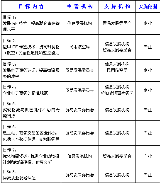 近年来,新加坡已成为领先亚太地区的物流国家。如今,面临电子商务给全球带来的机遇与挑战。新加坡政府已认识到,为了保持其在现代物流领域内的竞争优势,必须使现代物流更好地融入到全球电子商务之中,并成为领先的集成物流运营的枢纽中心。 新加坡力图成为全球电子物流网络中心并非一时心血来潮。早在2000年三月,为了推进电子物流在本国的发展,新加坡贸易发展委员会就联合IDA(新加坡信息发展机构)共同发布了“IT行动规划”,该规划旨在帮助物流企业进行企业资源整合,加强企业协作和推动企业间的国际合作。 “IT行动规划”的所有目标都是为给物流产业应用电子商务与信息技术提供一个强大的技术集成与应用框架。“IT行动规划”力图采用主要三种途径实现八大关键目标(见图1)。三种主要途径是指: A.通过企业外部整合来提高物流竞争力; B.通过加强企业内部各业务环节的无缝衔接来提高企业的团队作战能力; C.通过加强国际交流与合作,使新加坡成为全球电子物流的枢纽。  图1:“IT行动规划”目标图 新加坡物流界人士认为,上述三种途径实现的关键在于要认识到:物流服务商必须拥有能充分利用IT机遇的人力资源。 规划出台以后,“IT行动规划”八大关键目标中的每一项都已由新加坡相应的主管机构和其他支持机构负责加以调整并逐步开始实施。 在过去的两年里,该规划一直致力于提升信息技术在电子商务和现代物流中的集成应用,从图1中可以看出,该规划一共包括八个方面的内容,目的在于提高企业的联合库存管理能力、发展全程跟踪与监控技术、使物流与供应链上的活动保持协调一致等。在实施过程中,“IT行动规划”主要由新加坡的贸易发展委员会和信息发展机构共同负责实施,同时,该规划也受到了新加坡民航局(CAA)、新加坡海事港务局(MPA)和新加坡标准、生产力及创新委员会等的协助支持。在规划具体实施过程中,新加坡政府十分重视对成功案例的示范、宣传及推广。从实践效果来看,成功案例的推广已大大加速了该规划在物流产业内的应用推广。总体来看,“IT行动规划”经过近两年的实施已初见成效。 显然,发展电子物流离不开与物流相关电子信息技术的支撑,而电子通讯、资讯科技及互联网技术亦可大幅提升物流产业的生产力,所以新加坡政府投入了大量的人力、物力和财力资源以发展物流科技,目前已建立起了国家级的物流公共电子信息与交易平台,使物流行业参与者能以较低的成本进行电子数据交换,已建成的公共电子信息与交易平台包括:Portnet系统、Tradnet系统及将会推出的空运业电子发票及电子付款系统(E-Commerce Paymentand Invoicing for Aircargo System,EPIC)及空运业电子数据交换系统(INPECTRA)。公共电子信息与交易平台的构筑确保了电子物流在新加坡的快速发展。 目前,在新加坡已有数家走在其它企业前面的电子物流运营商,如GFX(主要提供基于因特网支持的航空业务)公司、Li&Fung(配送中心)公司、KWE(提供全球速递业务)公司等等,它们都属于第三方物流服务提供商。 其中,GFX公司已在为客户提供增值服务方面取得了不小的成就,而Li&Fung配送中心和KWE公司则积极应对电子商务,已经成功实现了业务重组和创新。这些公司也因此成为新加坡电子物流领域内的佼佼者。 去年,新加坡贸易发展委员会和信息发展机构等部门共同组织了一次企业调查,目的是调查“IT行动规划”实施以来,电子商务技术与信息技术在各种企业物流活动中的应用情况。结果表明: A.绝大多数被调查企业在日常的物流经营活动中,都使用了基本的计算机操作和处理系统。 B.被调查企业当中,将近25%的企业计划将电子商务与物流管理系统有机结合起来; C.被调查企业普遍认为,利用信息技术来提升物流运作效率,以及在物流产业中挖掘新的商业机会,具有巨大的可能性; D.被调查企业一致认为,电子物流将加速新加坡的物流产业升级,并提供更多的就业机会。 “IT行动规划”的推出及实施仅仅是一个开始。作为新加坡物流与交通运输行业的领导机构,新加坡贸易发展委员会宣称,它将不遗余力地帮助物流企业更好地利用电子商务在推动现代物流方面的巨大杠杆作用。 日前,新加坡经济局物流及交通署署长吴永义对外表示,由于新加坡在信息科技和金融设施等方面都比较有优势,他们特别希望借此能把一大批从事电子物流运做的企业吸引到新加坡来,有了这些物流企业的加盟,必将会大力促进新加坡电子商务与现代物流的协同、快速发展。同时,新加坡也希望凭借本国良好的投资环境,大量熟练的技术劳动力,以及快速发展的物流业,吸引更多的企业投资于本国的电子物流新领域,为新加坡成为亚太地区乃至全球电子物流的领导者奠定坚实的基础。 作者简介: 郭成,交通部物流工程研究中心,经济学硕士 电子邮箱:guocheng@cltc.com.cn
