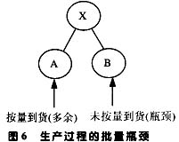 主生产厂商X的MRP系统在制定零部件采购计划时,为了尽量少地保持库存,往往有自身最优的订货批量,而且假定零部件供应商A和B完全能够按照这样的订货批量来供货。但作为零部件供应商A和B来说,它们也有自身的MRP系统,也会设定自身最优的供货批量,而且在一般情况下主生产厂商 X的最优订货批量与零部件供应商A和B的最优供货批量是不一致的,考虑到零部件装配存在特定的比例关系,则多余的零部件和短缺的零部件在主生产厂商X的生产过程中是同时存在的,短缺的零部件将成为生产过程的瓶颈,如图6所示。