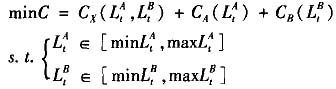 在主生产厂商X与零部件供应商A和B调整各自的提前期时,其实是在下面的数学模型约束下不断博弈的过程,最终形成各方都能接受的提前期。