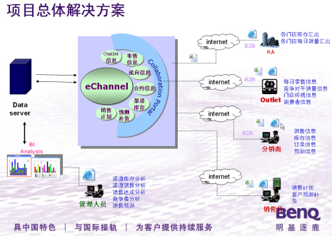 分销渠道管理平台以Internet为载体,基于流行的B/S三层架构,帮助企业灵活部署分销渠道网络,将渠道中的经销商,分销商,终端门店纳入同一管理平台。全面管理企业的销售网络建立、开发建设渠道终端、渠道终端资源投放、渠道分销任务分配、渠道库存、销售预测等ERP不能管控的供应链延伸业务过程。