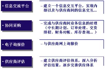 2001年底,商务车公司启动了ERP项目,也取得了非常好的应用效果,但是随的发展,逐渐发现在上下游企业间的协同是目前企业信息化的薄弱环节。随着公司业务的不断发展,采购部门面临越来越多的压力,如何将采购、质量、生产、财务等跟供应商有关的信息快速传递,减少供应链上的信息延迟,获得更快的反应速度,成了不得不面对的问题。仅仅依靠原有的ERP系统已经无法适应公司快速发展的需要,为此开始将目光转向供应链管理,希望与明基逐鹿合作,以e化采购的方式实现供应商与企业的紧密集成,实现从采购协同,到供应体系的优化,打造高效的供应链体系,共同应对未来的挑战。